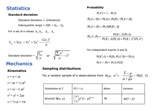 Maths Formula Booklet Edexcel A Level